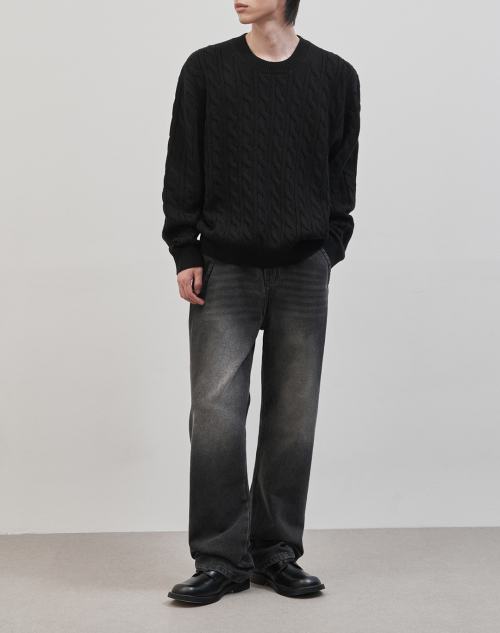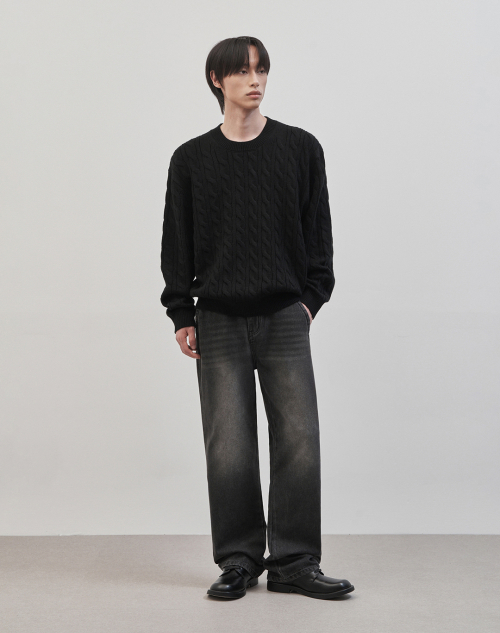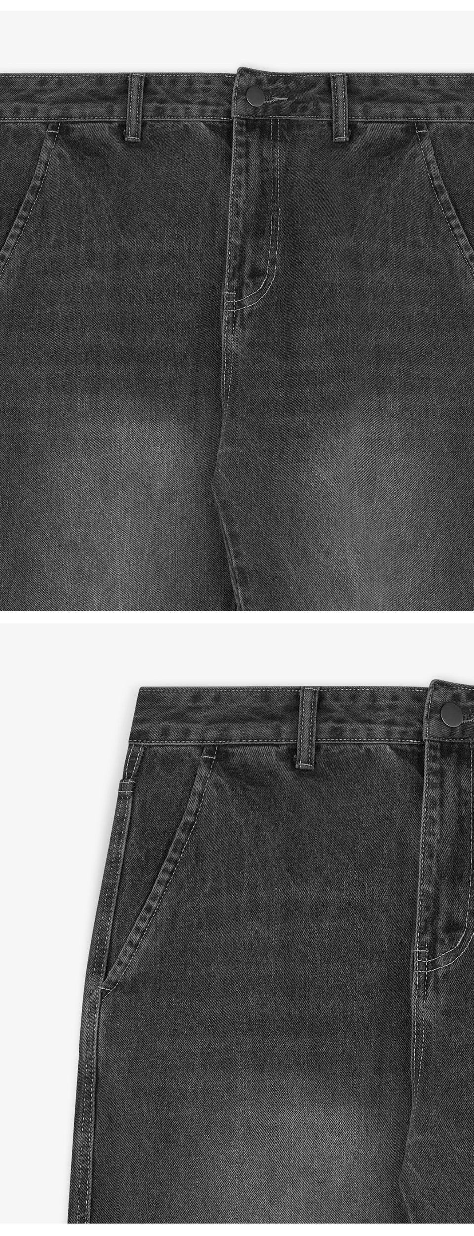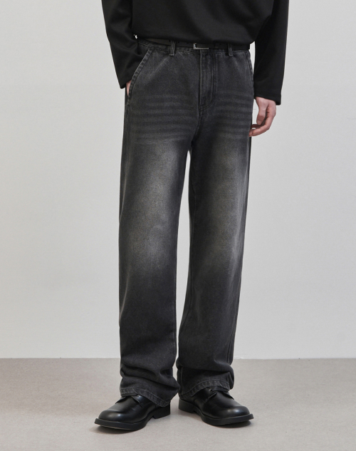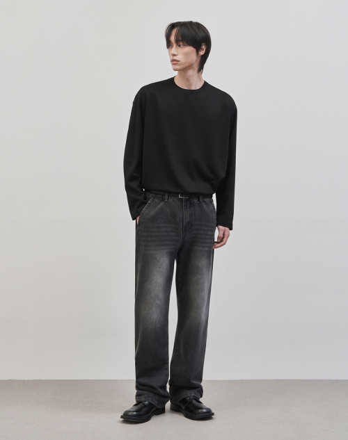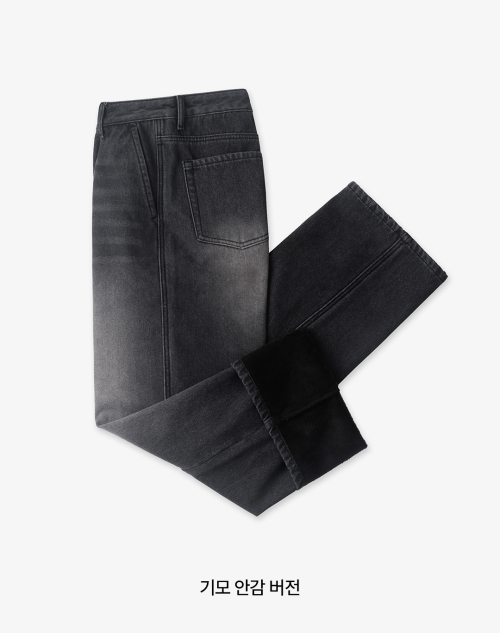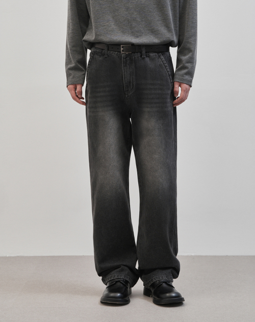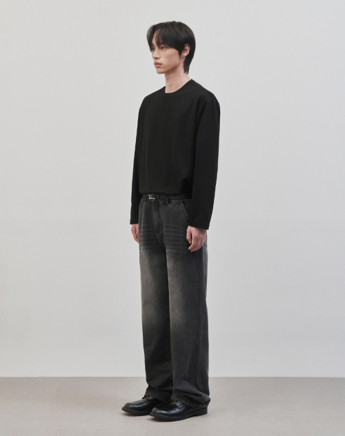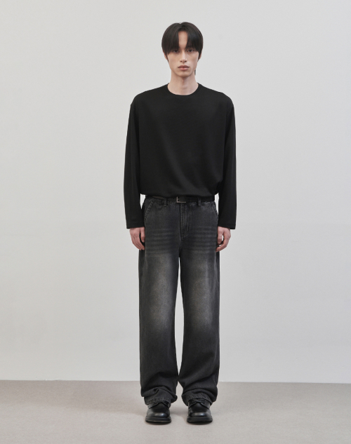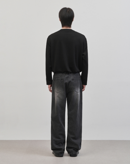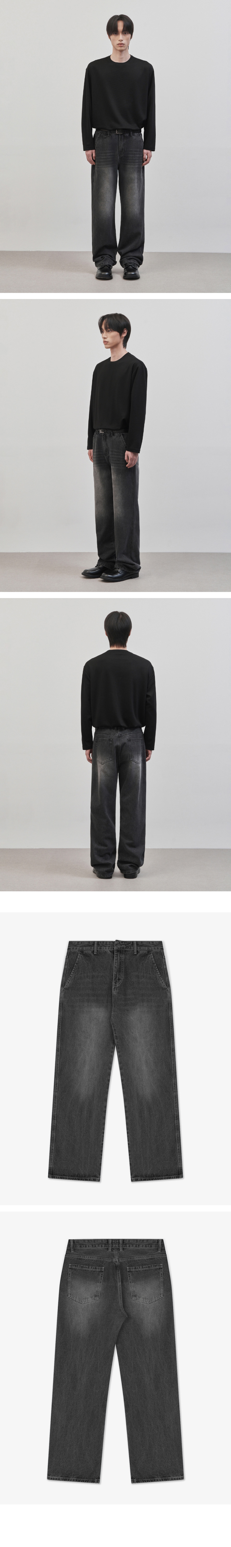 릴렉스 세미 와이드 데님 팬츠 [블랙]