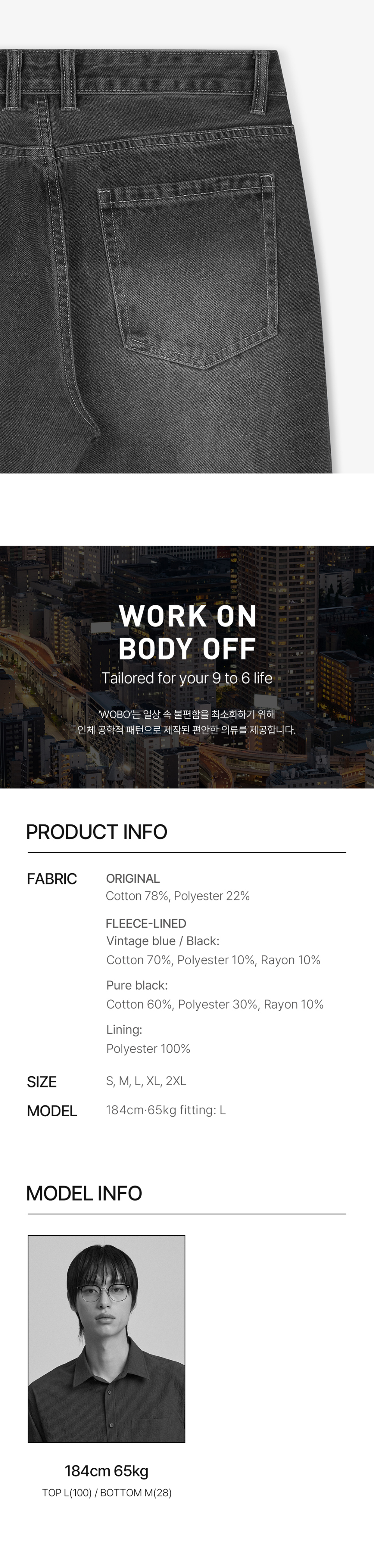 워크온바디오프(WORK ON BODY OFF)는 일상 속 불편함을 최소화 시키고자 탄생한 '오피스 워크 웨어' 브랜드입니다.