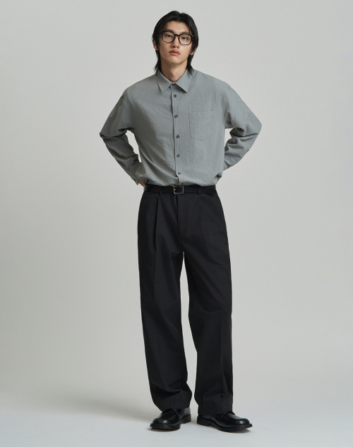 세미 와이드 원턱 슬랙스 [블랙]