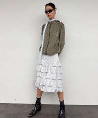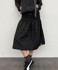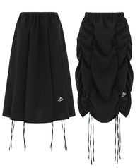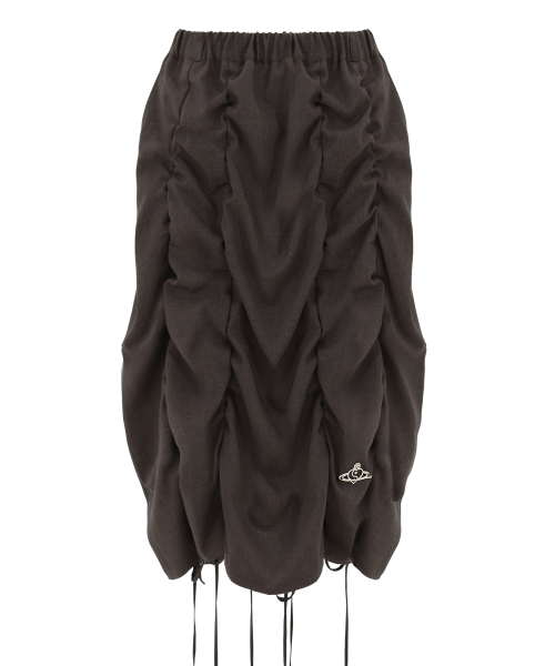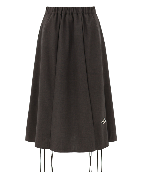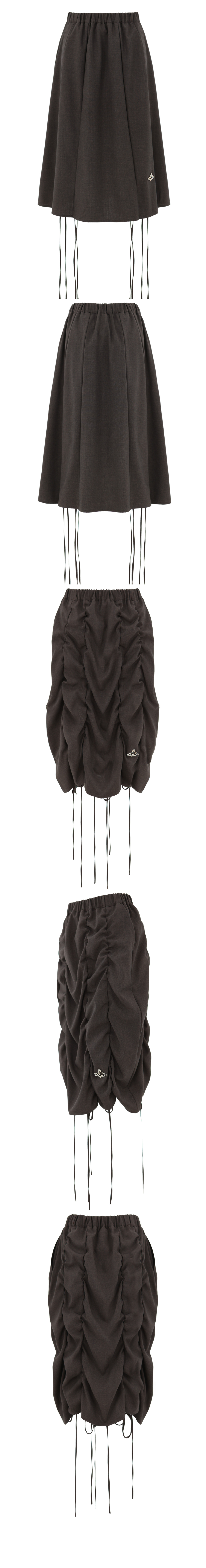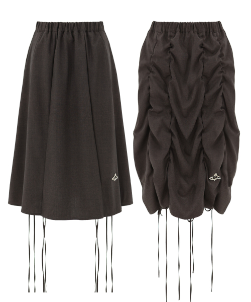 셔링 미디 스커트. 스트링으로 셔링조절이 가능한 스커트.