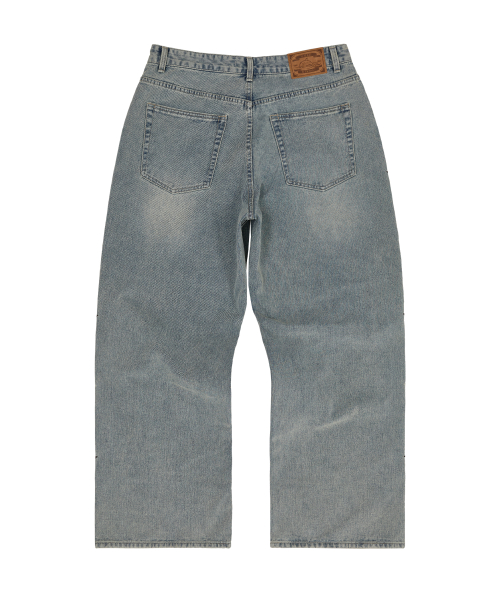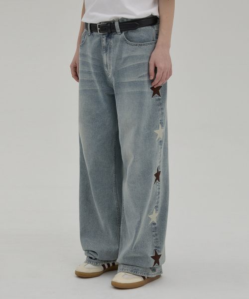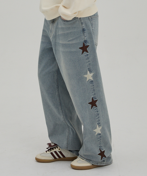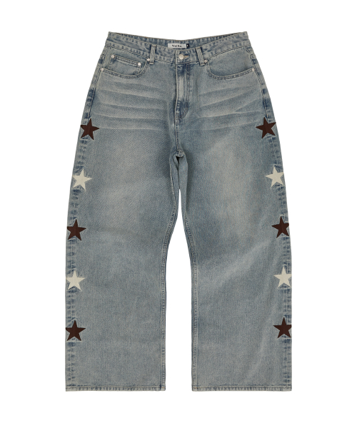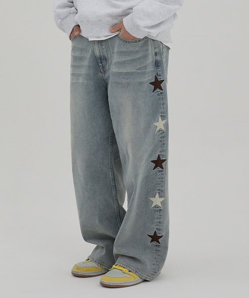 스타 데님 팬츠 옐로우 워시드 라이트블루