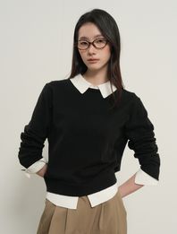 릴렉스드 카라 레이어드 풀오버 [BLACK] / GF1LKP502