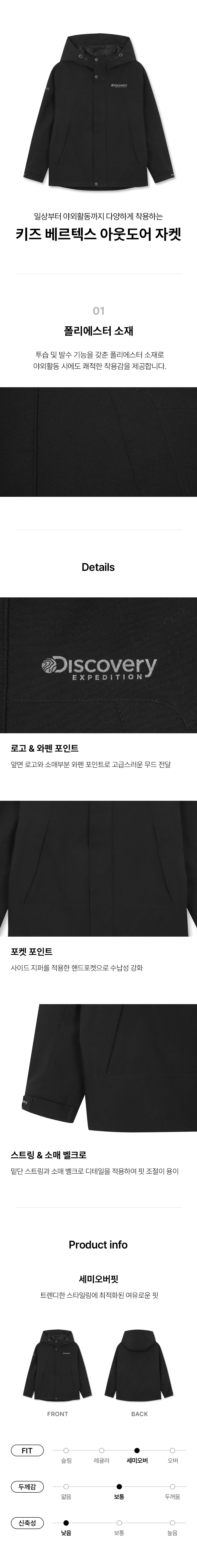 컬러 : BLACK 상품코드: DKWJ31051-BKS상품명: 키즈 베르텍스 아웃도어 자켓 (BLACK) 소재: 겉감1 폴리에스터100% 겉감2 폴리에스터100% 안감 나일론100% 주머니감 폴리에스터100%