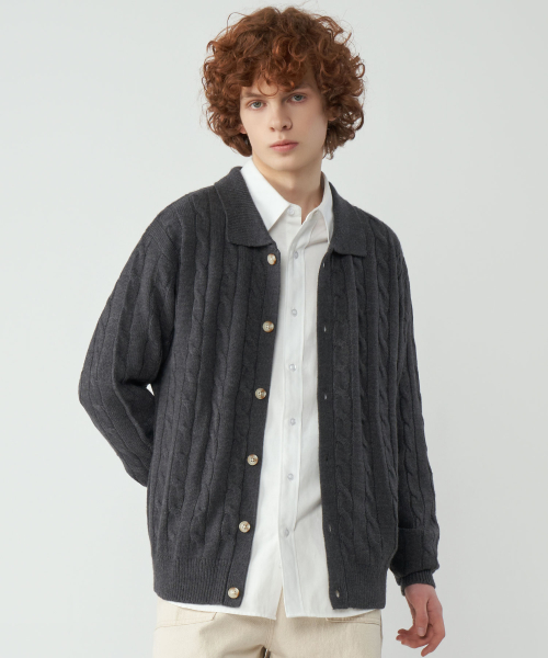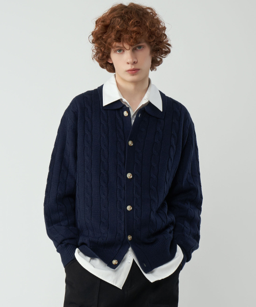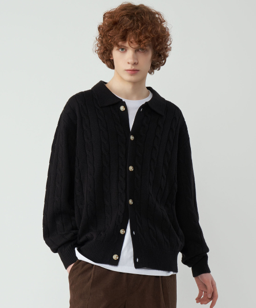 오버핏 케이블 카라 니트 가디건 3Color