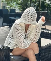 펀칭 메쉬 후드집업 니트 화이트 GKZ-280