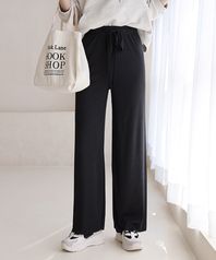 스트링 밴딩 밑단컷팅 와이드 블랙 팬츠