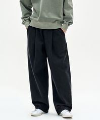 700G 블리치 원 턱 와이드 스웨트 팬츠-워시드 블랙-