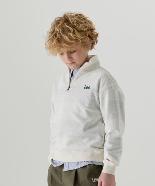 하프 집업 스트라이프 스웨트셔츠 화이트멜란지 LK2501CR03WM