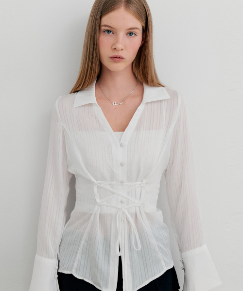 코르셋 스트라이프 셔츠 white