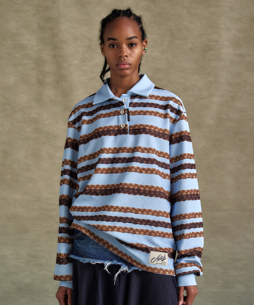헤어 브래이드 스트라이프 카라 티셔츠 atb1264w(BLUE)
