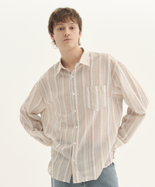 스트라이프 리넨 셔츠_레드