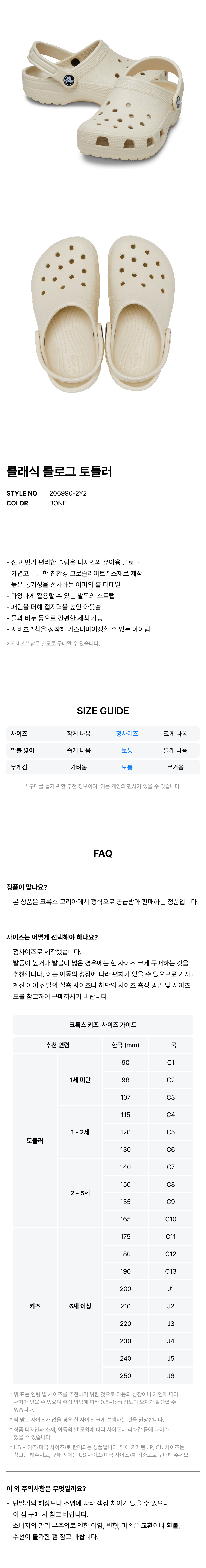 클래식 클로그 토들러 - 본 / 206990-2Y2