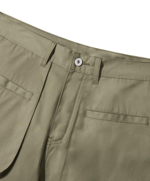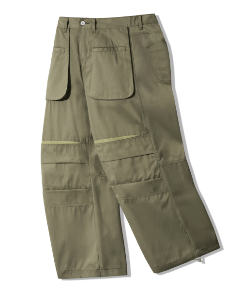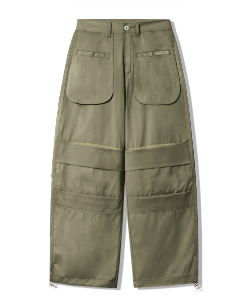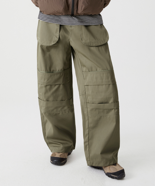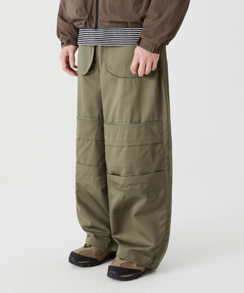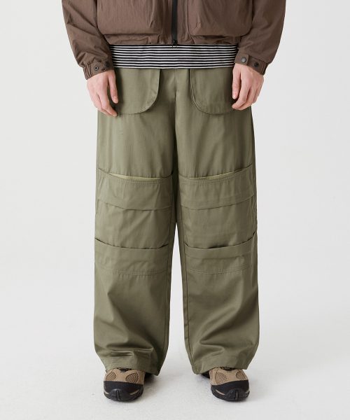 라운드 포켓 니 딥 턱 벌룬핏 코튼 팬츠 [카키]