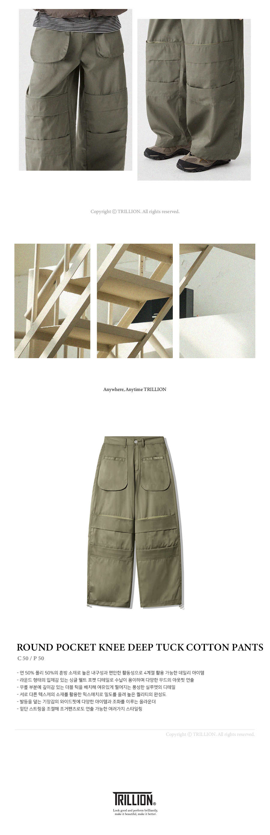 트릴리온(TRILLION)은 클래식, 빈티지, 아웃도어, 어반 등의 스타일을 베이스로 트릴리온만의 컨템포러리 감성을 더해 높은 퀄리티의 제품을 합리적인 가격에 제시합니다. 단 하나의 제품에도 만족감을 느낄 수 있는 가치를 추구합니다.