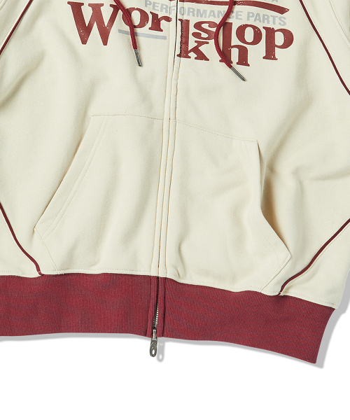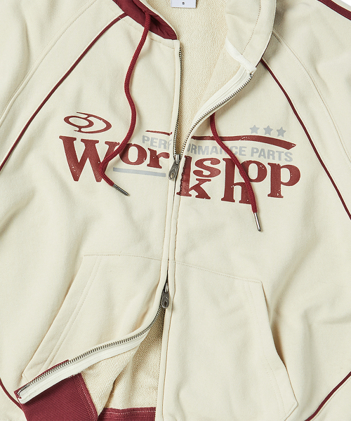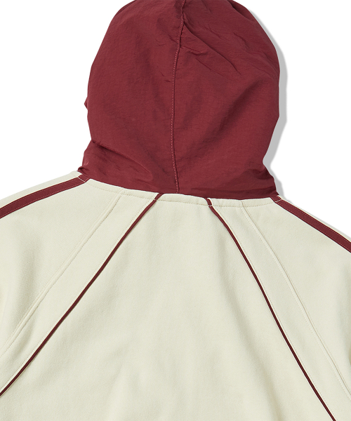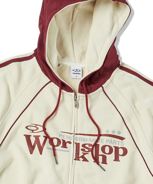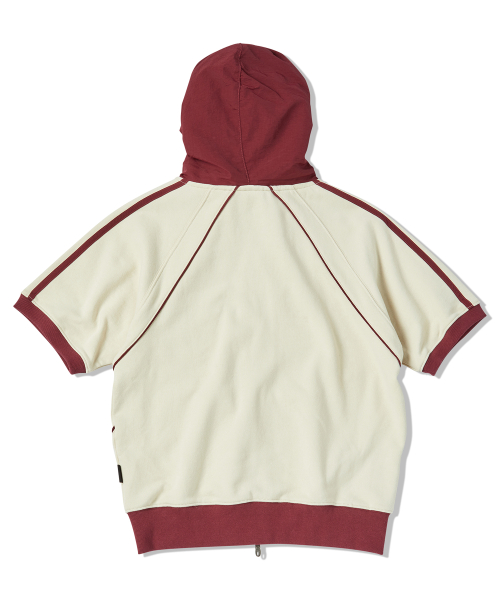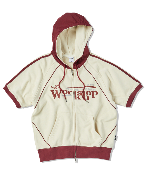 워크샵 라인 래글런 나일론 믹스 반팔 후드 집업 라이트 베이지
