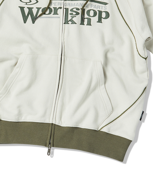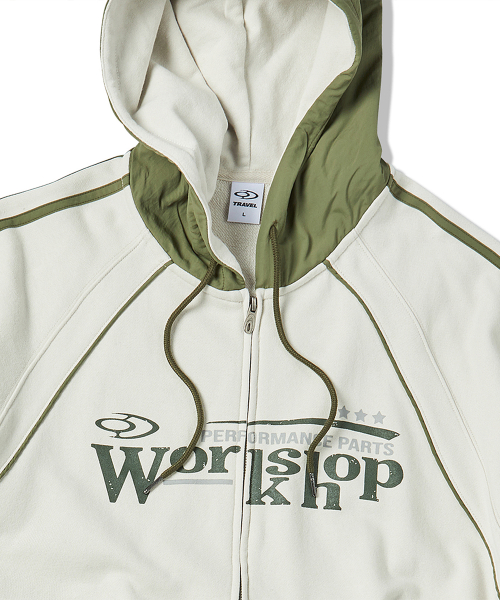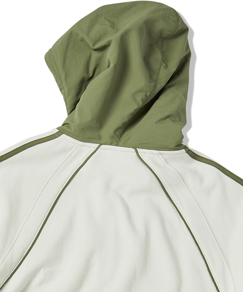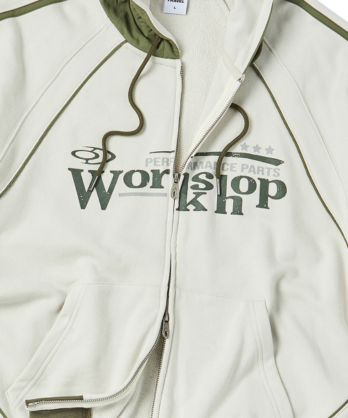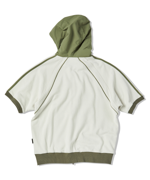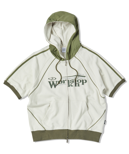 워크샵 라인 래글런 나일론 믹스 반팔 후드 집업 아이보리