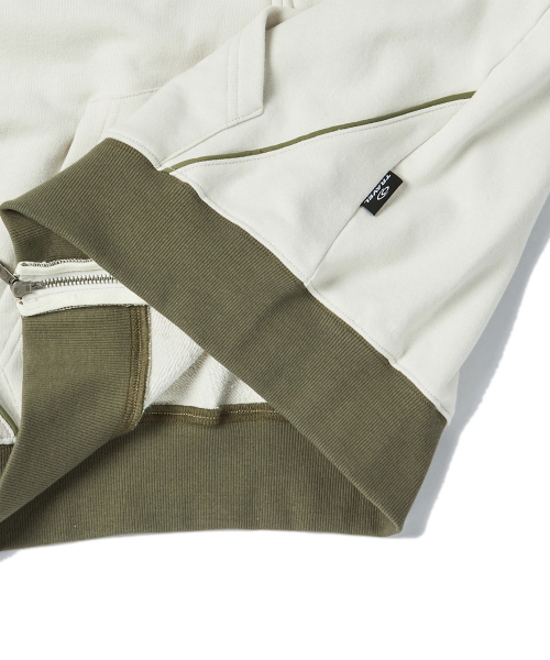 피그먼트 컬러 블록 후드 집업 자켓 더플 백 카키