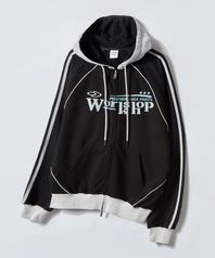 워크샵 라인 래글런 나일론 믹스 후드 집업 블랙