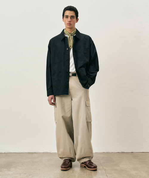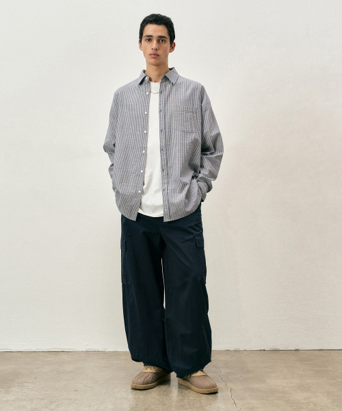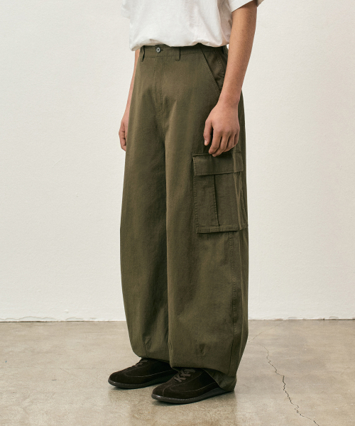 코튼 워시드 벌룬 카고 팬츠 네이비 COOSPT244NAVY