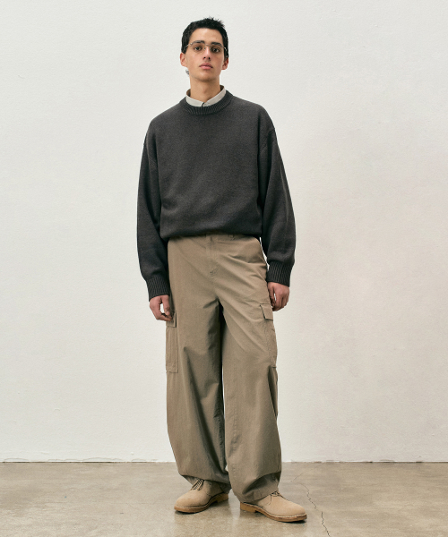 데일리 워셔블 피그먼트 헨리넥 라운드 니트_차콜