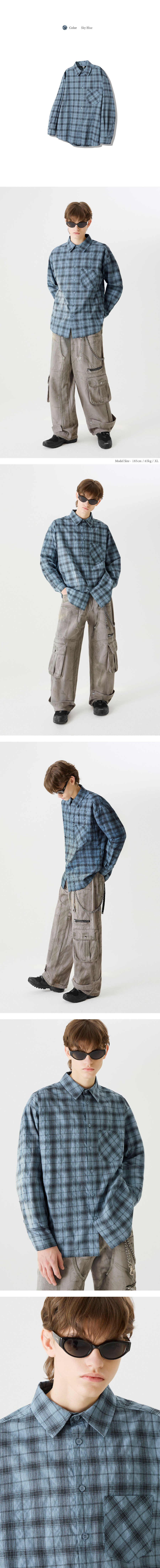 원 포켓 오버핏 플레이드 체크 셔츠 [스카이 블루]