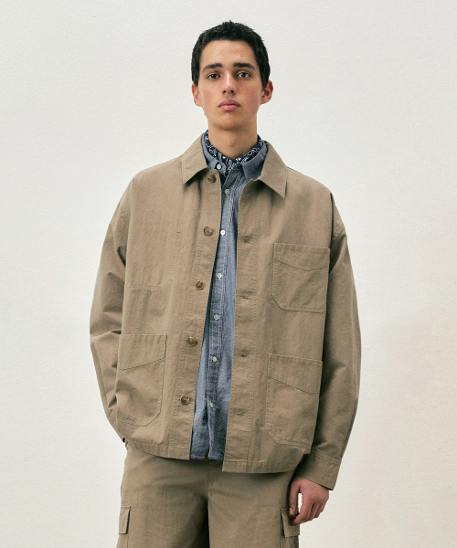 코튼 프렌치 워시드 워크자켓 카키 COOSJK041KHAKI