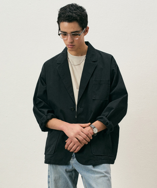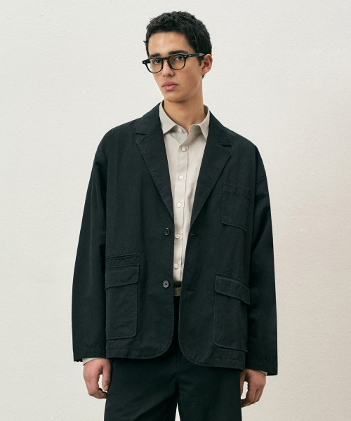 코튼 루즈핏 워시드 블레이저 블랙 COOSJK039BLACK