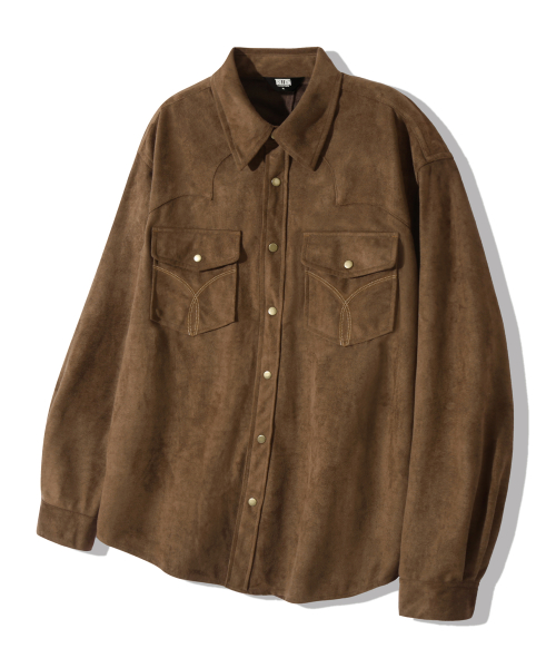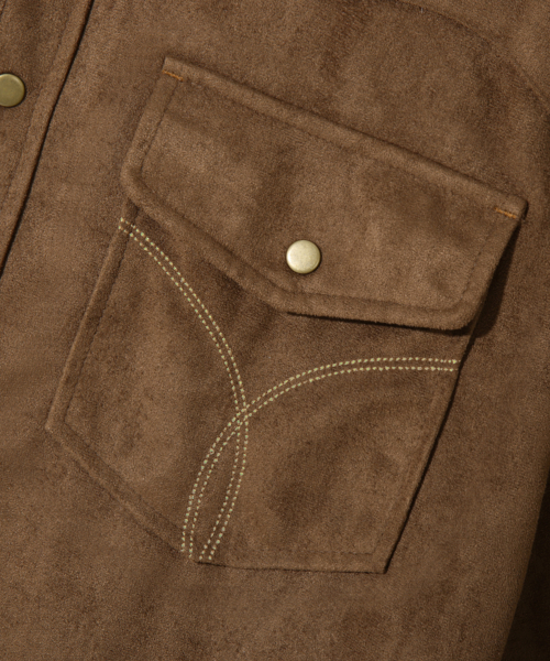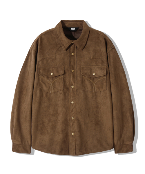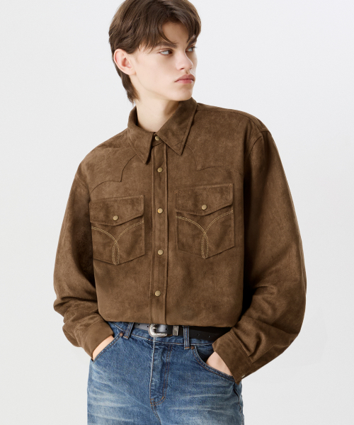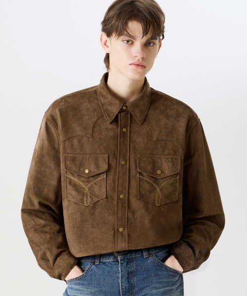 웨스턴 투 포켓 자수 스웨이드 셔츠 [브라운]