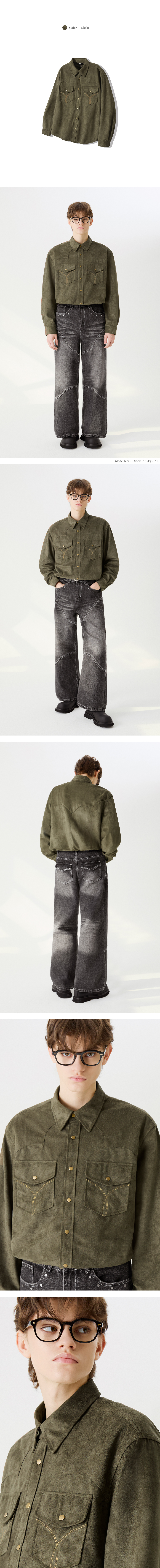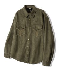 웨스턴 투 포켓 자수 스웨이드 셔츠 [카키]
