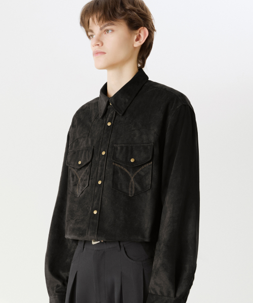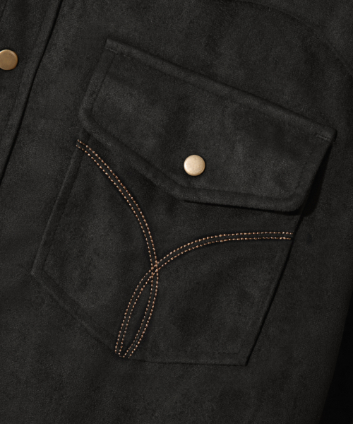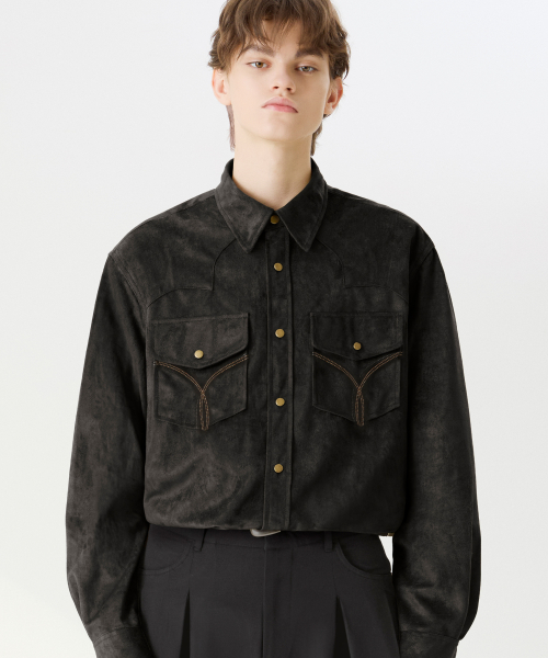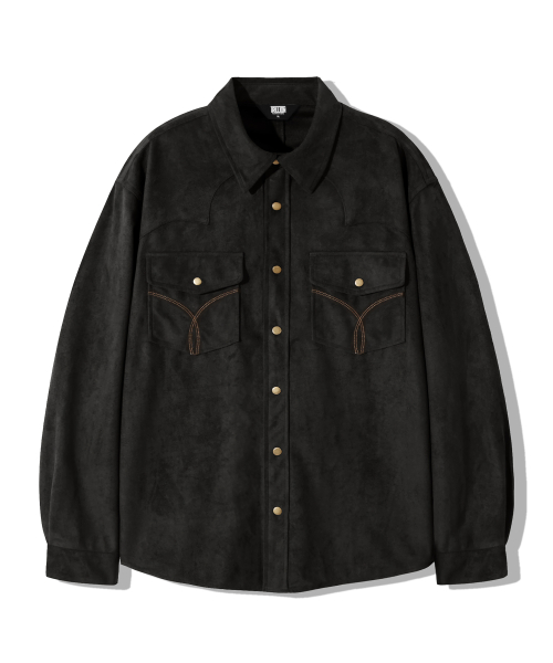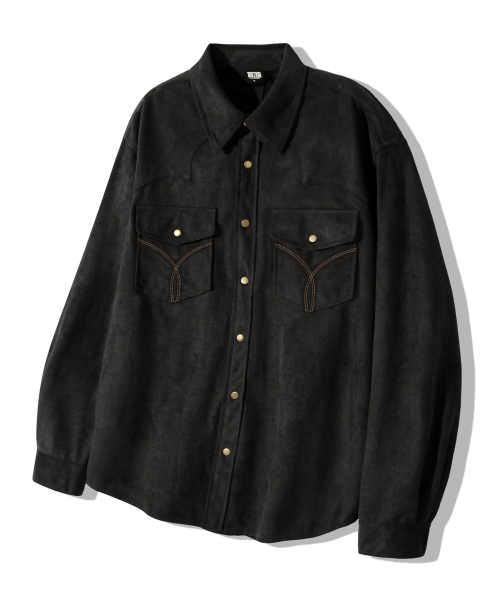 웨스턴 투 포켓 자수 스웨이드 셔츠 [블랙]