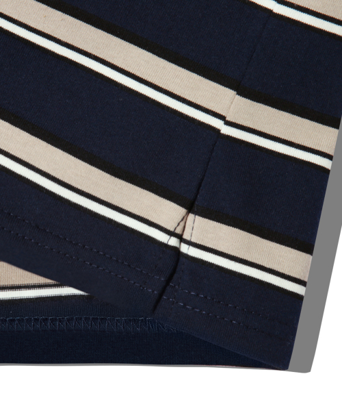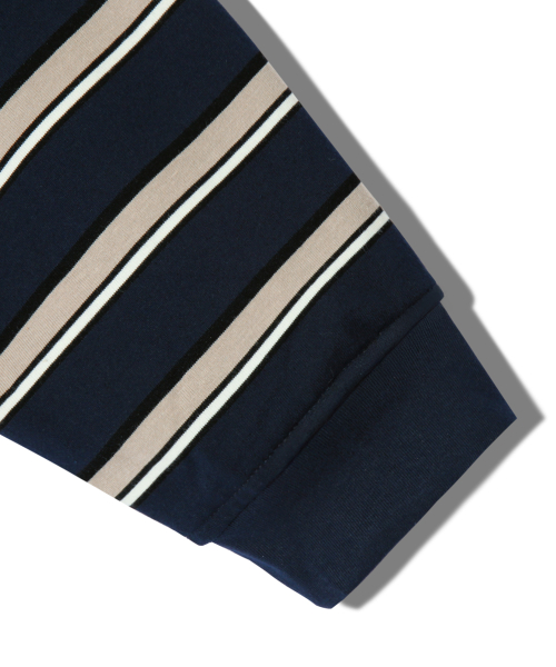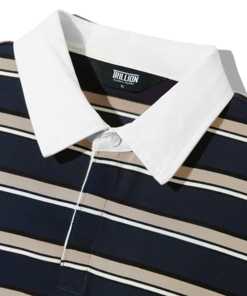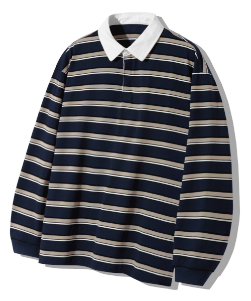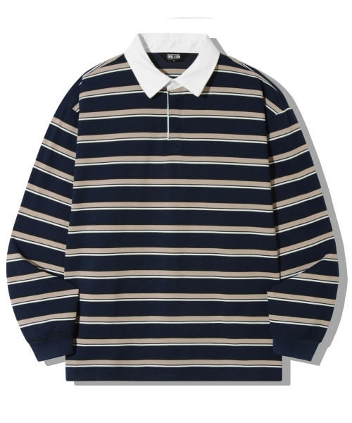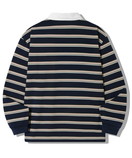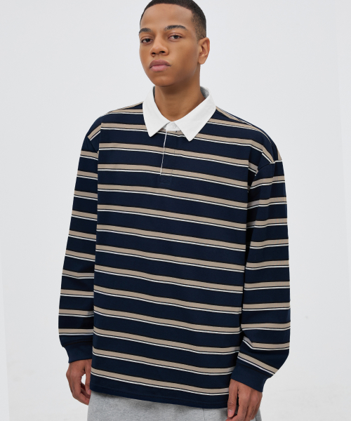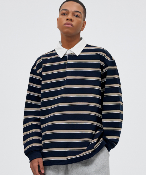 스트라이프 럭비 오버핏 피케 폴로 셔츠 [네이비]