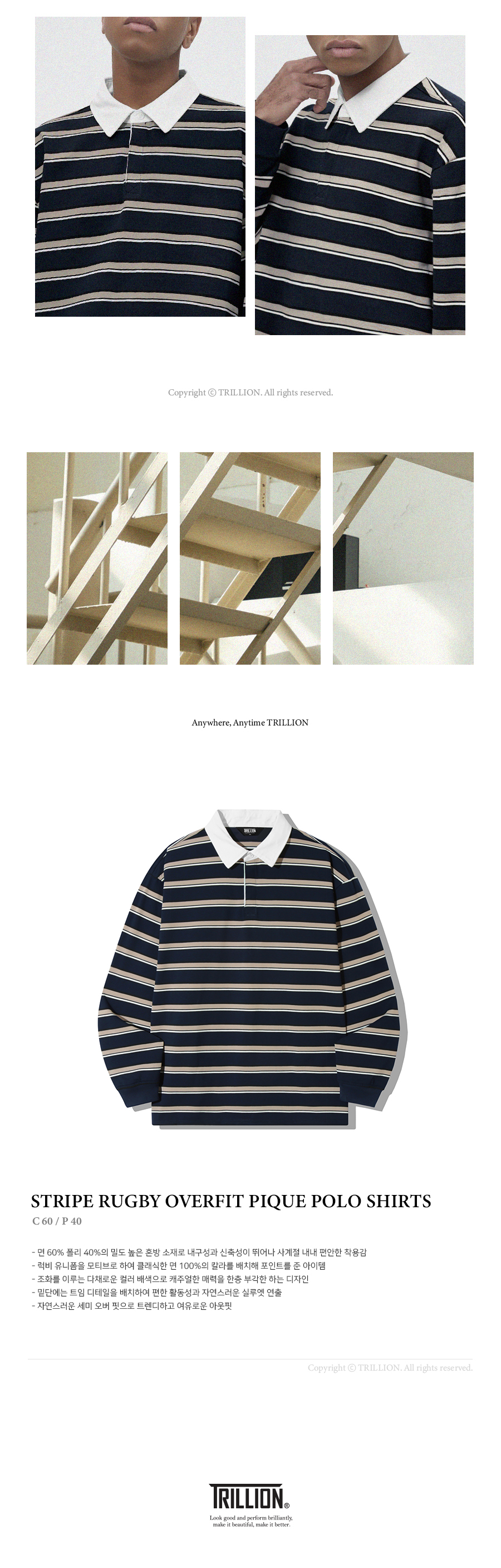 트릴리온(TRILLION)은 클래식, 빈티지, 아웃도어, 어반 등의 스타일을 베이스로 트릴리온만의 컨템포러리 감성을 더해 높은 퀄리티의 제품을 합리적인 가격에 제시합니다. 단 하나의 제품에도 만족감을 느낄 수 있는 가치를 추구합니다.