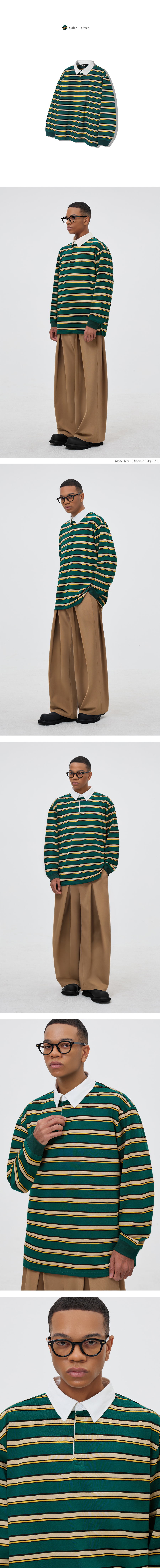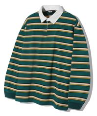 스트라이프 럭비 오버핏 피케 폴로 셔츠 [그린]