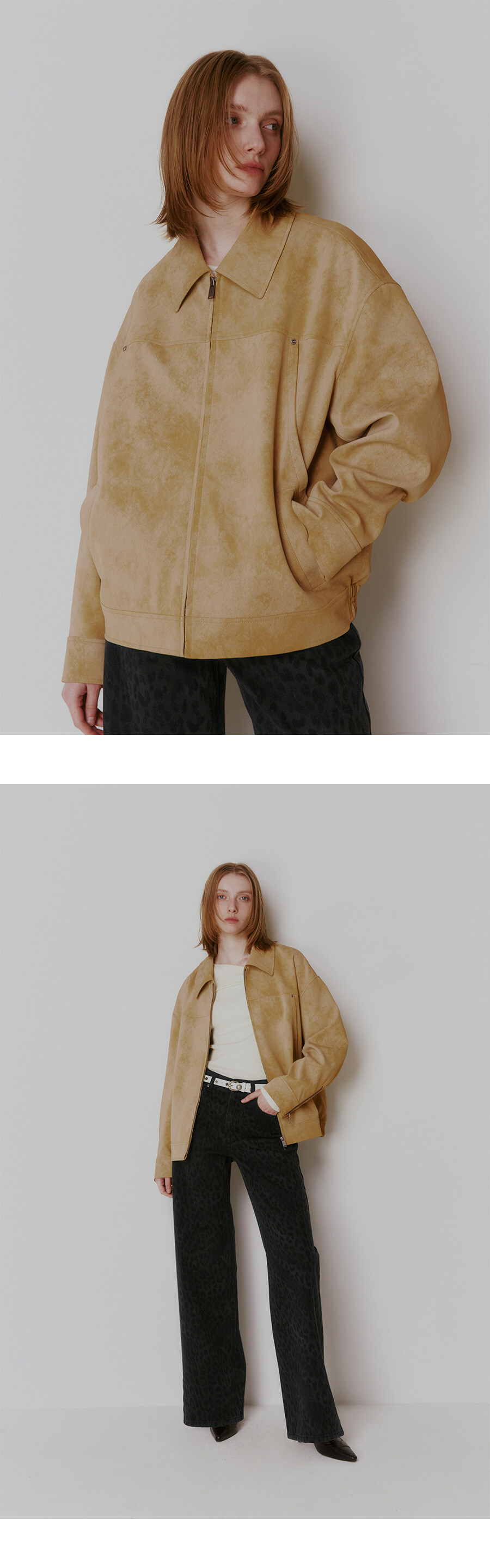 (사이즈추가)High-neck Leather Blouson Jacket VL5AJ093_2color