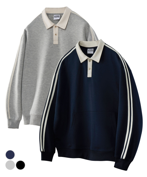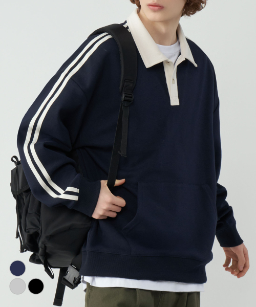 트랙 럭비 카라 오버핏 맨투맨 스웻 티셔츠 3 COLOR