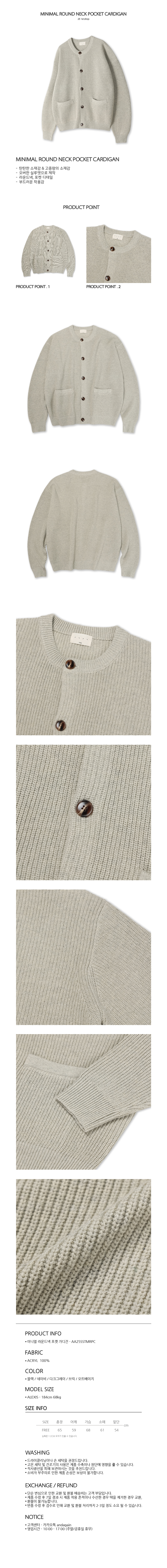 미니멀 라운드넥 포켓 가디건 (오트밀