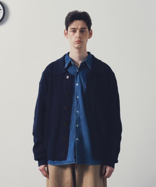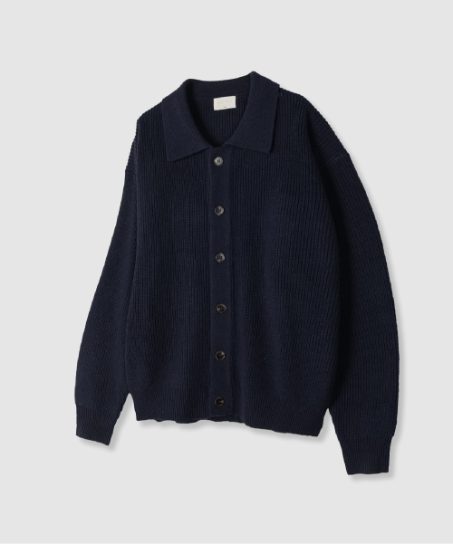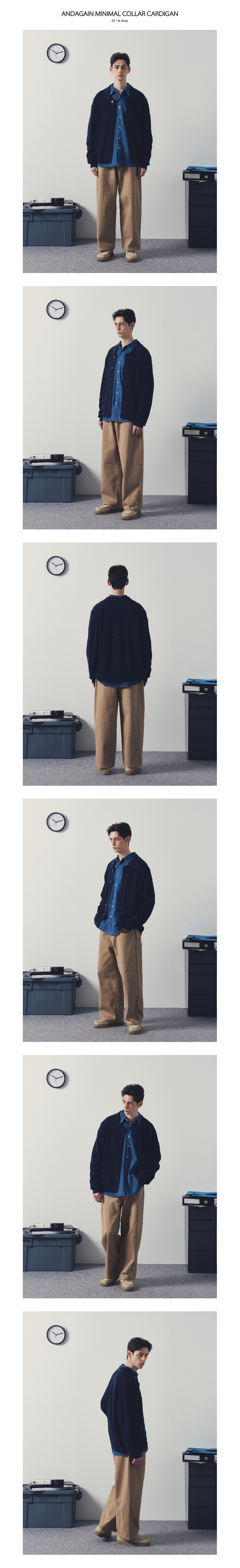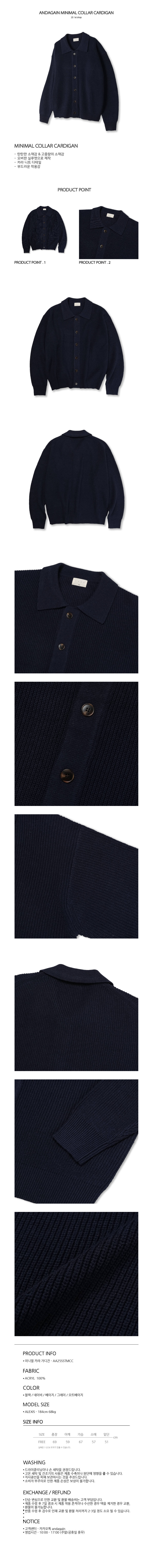 미니멀 카라 가디건 (네이비