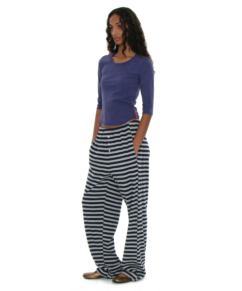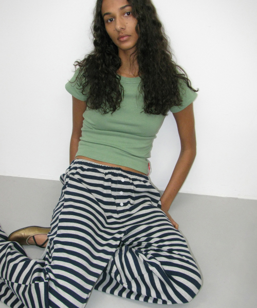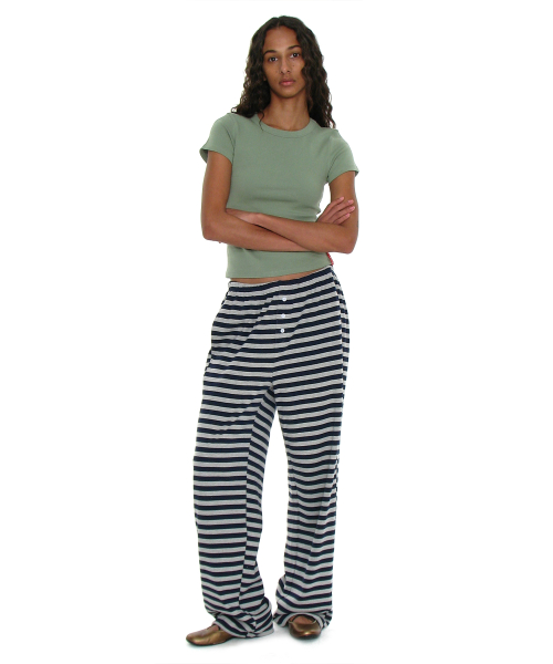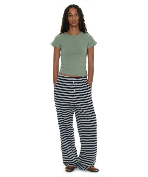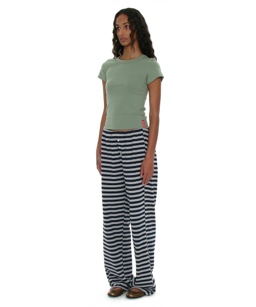 PWC 스트라이프 저지 와이드 팬츠_네이비