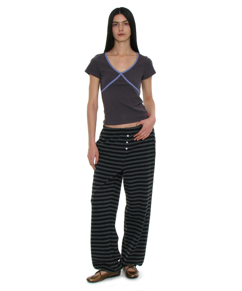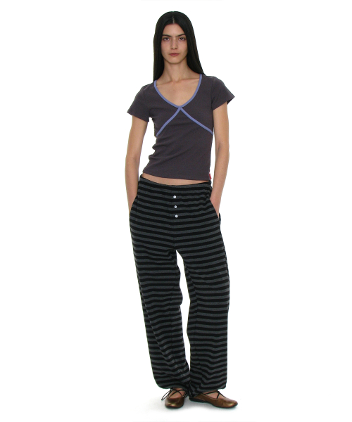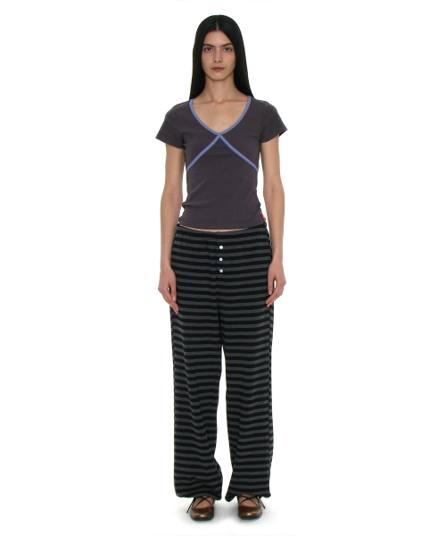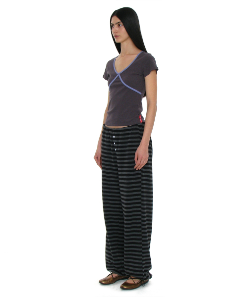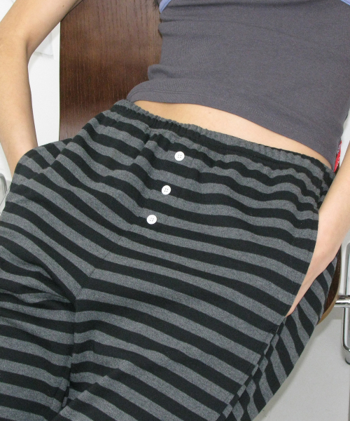 PWC 스트라이프 저지 와이드 팬츠_블랙