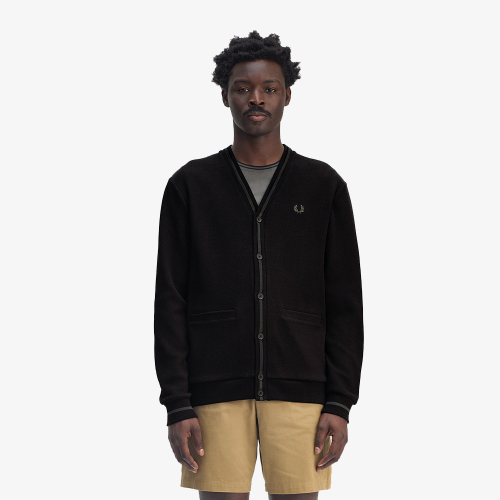 [Sharp] 팁 피케 텍스쳐 가디건 - 블랙/코트 그린 AFPM2512654-Y43