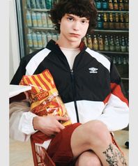 팝러쉬 컬러블럭 스탠넥 바람막이 자켓 차콜 UR123CJK34