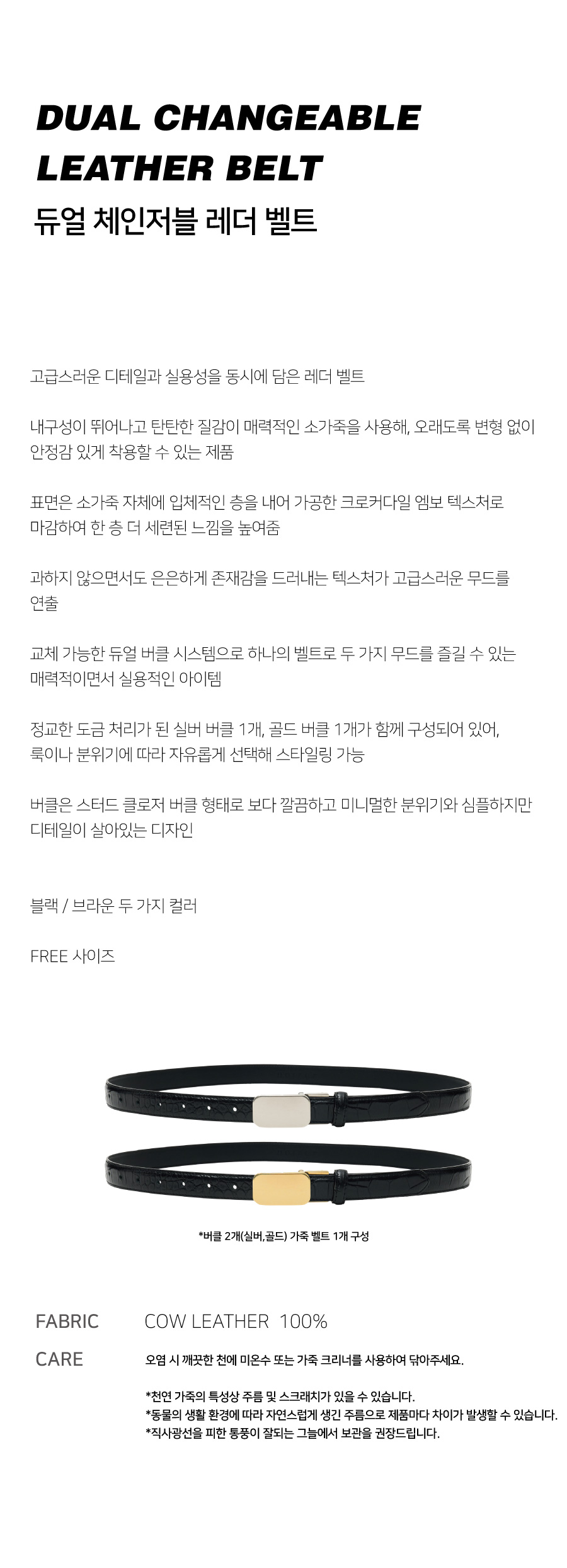 듀얼 체인저블 레더 벨트 (블랙)