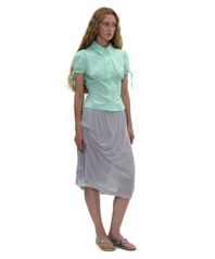 메쉬 콤비 드레이프 미디 스커트_라이트 그레이