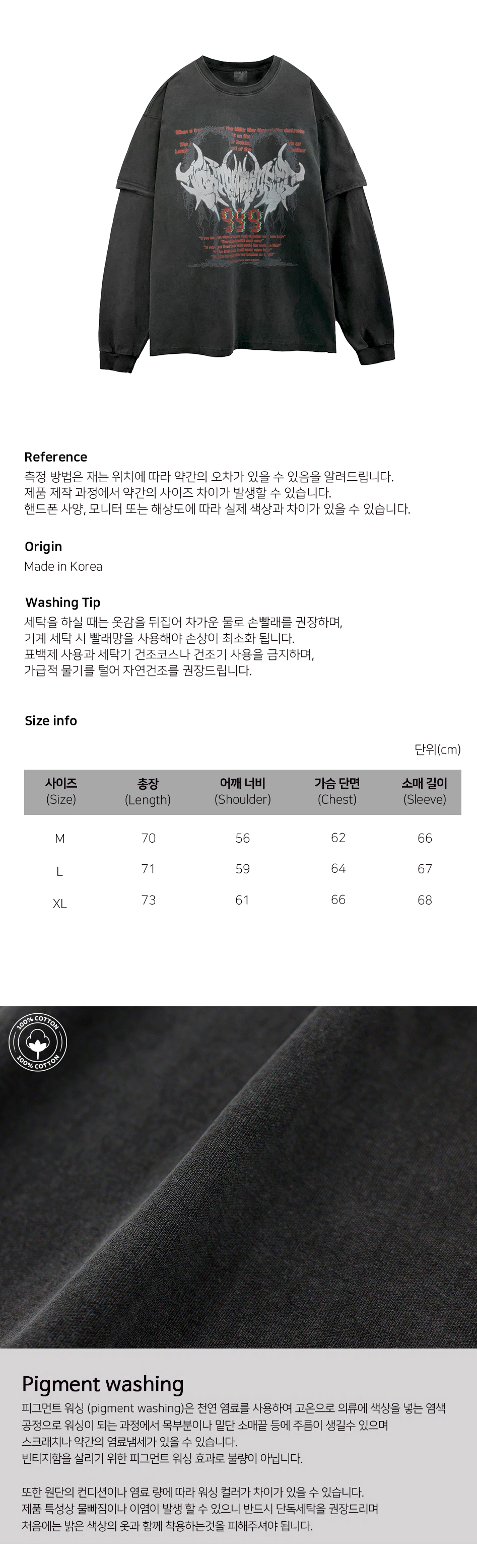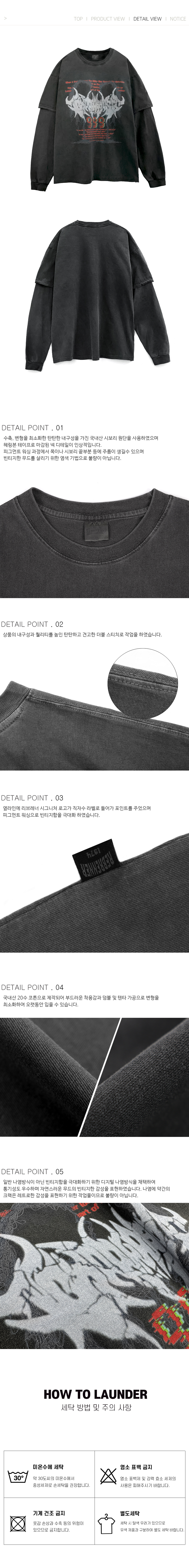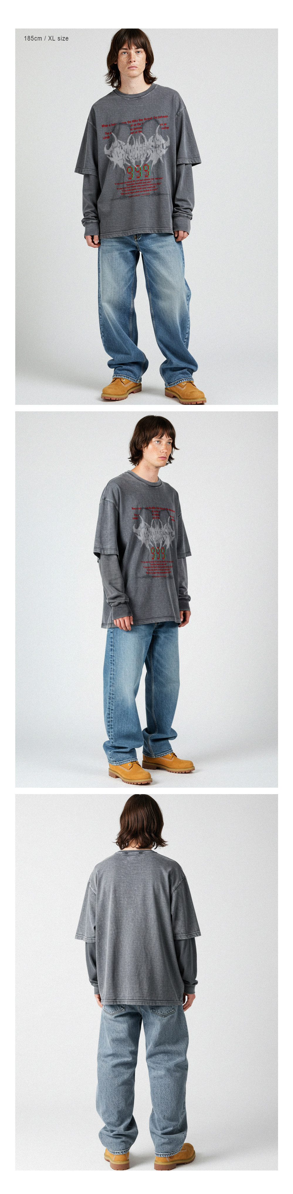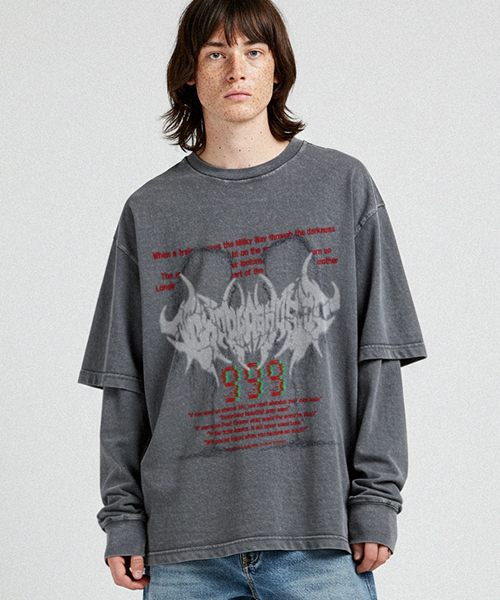 DTG 메텔 오버핏 피그먼트 레이어드 티셔츠 차콜