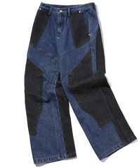 믹스드 절개 와이드 데님 팬츠 워시드블루