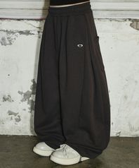 스몰 로고 멀티턱 커브드 스웨트 팬츠[브라운]