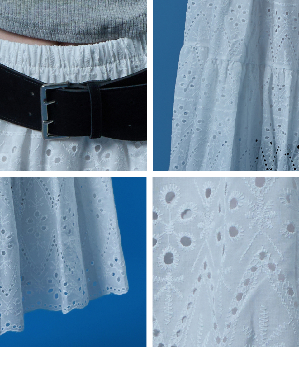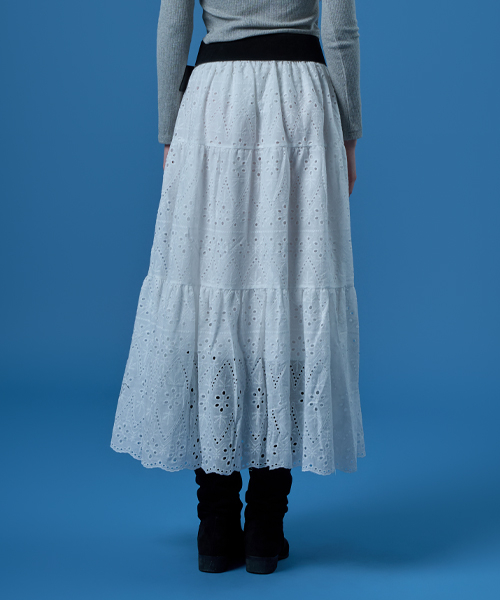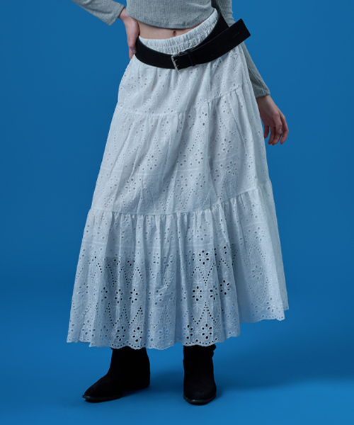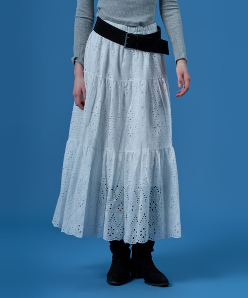 레이스 자수 플라워 플레어 롱스커트 [WHITE] KCL.