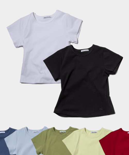 플레이스 심플 베이직 슬림핏 세미 크롭 코튼 반소매티 _10color