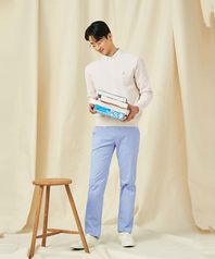 이 제품은 기계세탁이 가능합니다. 표백제를 사용하거나 물에 30분 이상 담가 놓지 마십시오. 짙은 색상과 연한 색상의 제품은 분리하여 세탁하십시오. 물에 젖거나 땀이 많이 묻으면 이염, 변색, 탈색될 수 있으니 신속히 세탁하십시오. 형태를 가지런히 하여 그늘에 뉘어서 건조하십시오. 기계 건조 시 제품이 손상될 수 있으므로 반드시 자연 건조하십시오. 마찰에 의해 보푸라기가 발생할 수 있으므로 주의하십시오.