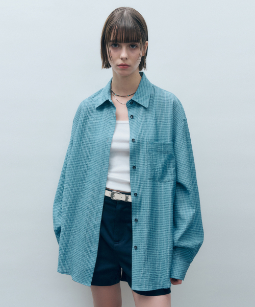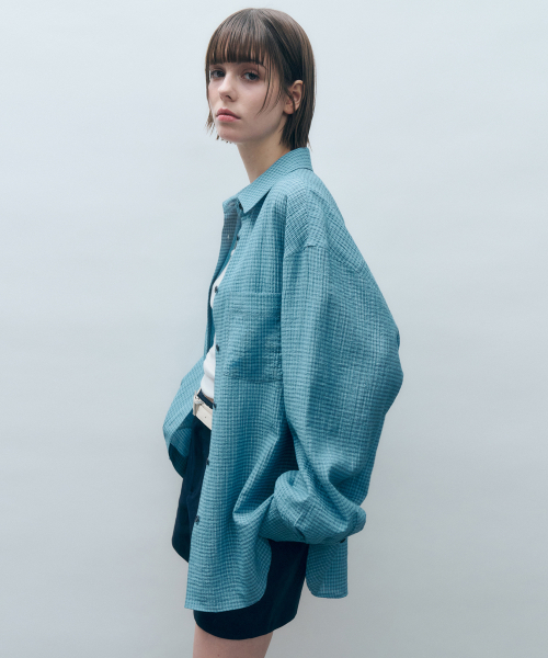 체크 시어서커 오버핏 셔츠 블루 MDSH019CHECKBLUE